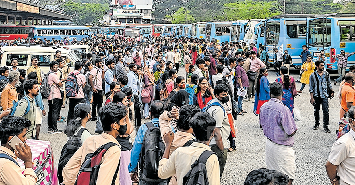 മലപ്പുറം എടപ്പാളിൽ ബസുകൾ മിന്നൽ പണിമുടക്ക് നടത്തുന്നു. കഴിഞ്ഞദിവസം ഉണ്ടായ സംഘർഷത്തിൽ ബസ് ജീവനക്കാർക്കെതിരെ കേസെടുത്തതിൽ പ്രതിഷേധിച്ചാണ് പണിമുടക്ക്. ഓടാൻ തയ്യാറായി വന്ന ബസുകളെ സമരക്കാർ തടഞ്ഞു.മിന്നൽ പണിമുടക്ക് വിദ്യാർത്ഥികളടങ്ങുന്ന യാത്രക്കാരെ ദുരിതത്തിലക്കി. പ്രദേശത്ത് വൻ പൊലീസ് സന്നാഹമാണ്