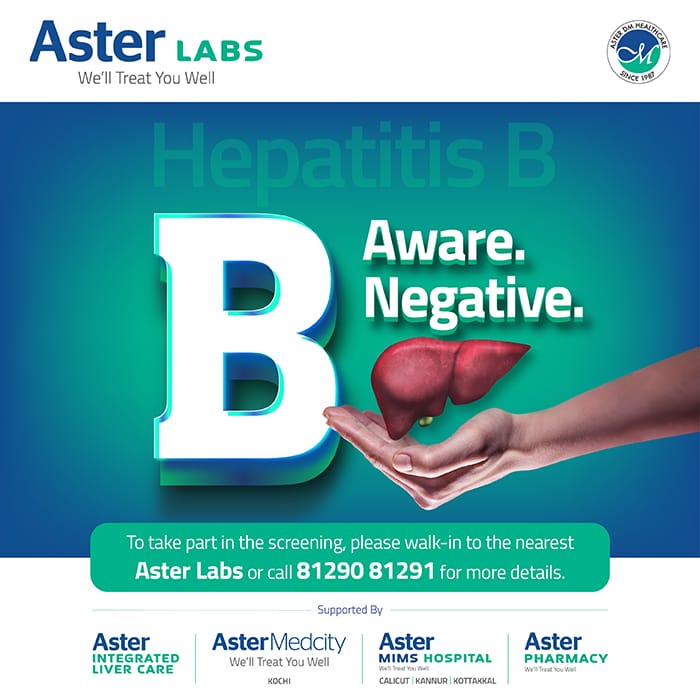 ഏപ്രില് 19, ലോക കരള് ദിനാചരണത്തോടനുബന്ധിച്ചാണ് ക്യാമ്പയിന് ആരംഭിച്ചിരിക്കുന്നത്. ജൂലൈ 28, ലോക ഹെപ്പറ്റൈറ്റിസ് ദിനം വരെയാണ് ‘B Aware. B Negative’ ‘ തുടരുക. ഹെപ്പറ്റൈറ്റിസ് ബി (റാപ്പിഡ് കാര്ഡ് ടെസ്റ്റ്) പരിശോധന ആസ്റ്റര് ലാബ്സിന്റെ എല്ലാ ഔട്ട്ലെറ്റുകളിലും ലഭ്യമാണ്. ക്യാമ്പയിനിന്റെ ഭാഗമായി ആസ്റ്റര് ലാബ്സിന്റെ എല്ലാ ഔട്ട്ലെറ്റുകളിലും റാപ്പിഡ് കാര്ഡ് ടെസ്റ്റ് സൗജന്യമായി ചെയ്യാനുള്ള അവസരം ഉണ്ടാകും.