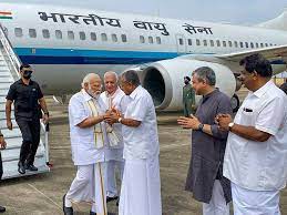 തിരുവനന്തപുരം: വന്ദേഭാരത് ട്രെയിൻ സർവീസ് സെൻട്രൽ സ്റ്റേഡിയത്തിൽ പ്രധാനമന്ത്രി നരേന്ദ്രമോദി ഫ്ലാഗ് ഓഫ് ചെയ്തു. രാവിലെ വിമാനത്താവളത്തിന്റെ ടെക്നിക്കൽ ഏരിയയിൽ ഗവർണർ ആരിഫ് മുഹമ്മദ് ഖാൻ മുഖ്യമന്ത്രി പിണറായി വിജയൻ എന്നിവർ ചേർന്ന് പ്രധാനമന്ത്രിയെ സ്വീകരിച്ചു.