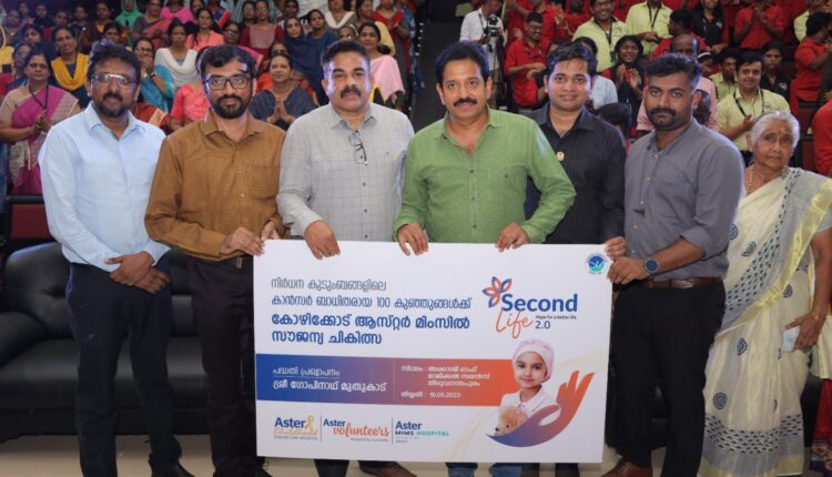 തിരുവനന്തപുരം : കോഴിക്കോട് ആസ്റ്റർ മിംസിന്റെയും ആസ്റ്റർ ഡി എം ഹെൽത്ത്കെയറിന്റെ ആഗോളതലത്തില് പ്രവര്ത്തിക്കുന്ന സന്നദ്ധസേവന സംഘടനയായ ആസ്റ്റര് വളണ്ടിയേഴ്സിന്റെയും, ആസ്റ്റര് ഡി എം ഫൗണ്ടേഷന്റെയും, സന്നദ്ധസേവന രംഗത്ത് പ്രവര്ത്തിക്കുന്ന മറ്റ് വ്യക്തികളുടേയും സംഘടനകളുടേയും സഹകരണത്തോടെ ഇന്ത്യയിലെ സാമ്പത്തികമായി പിന്നാക്കം നില്ക്കുന്ന 18 വയസ്സില് താഴെ പ്രായമുള്ള കാൻസർ ബാധിതരായ 100 കുഞ്ഞുങ്ങള്ക്ക് സൗജന്യ ചികിത്സ നിര്വ്വഹിക്കുന്നു. തിരുവനന്തപുരത്ത് വച്ച് നടന്ന ചടങ്ങിൽ പ്രശസ്ത മജീഷ്യനും മോട്ടിവേഷണൽ സ്പീക്കറുമായ ഗോപിനാഥ് മുതുകാട് ‘സെക്കന്റ് ലൈഫ് 2.0’ പദ്ധതി ഉദ്ഘാടനം ചെയ്തു.