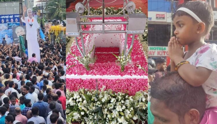 പതിനായിരക്കണക്കിന് ജനങ്ങളുടെ അന്തിമോപചാരമേറ്റുവാങ്ങി ഉച്ചകഴിഞ്ഞ് രണ്ടരയോടെയാണ് ഉമ്മന് ചാണ്ടിയുടെ ഭൗതികശരീരം വഹിച്ചുകൊണ്ടുള്ള വിലാപയാത്ര തിരുനക്കര മൈതാനിയില്നിന്ന് പുതുപ്പള്ളിയിലേക്ക് പുറപ്പെട്ടത്. ജനത്തിരക്ക് കാരണം മുന്പ് നിശ്ചയിച്ചതുപ്രകാരം മണിക്കൂറുകളോളം വൈകി അഞ്ചര മണിയോടെയാണ് മൃതദേഹം പുതുപ്പള്ളിയിലെത്തിയത്. തറവാട് വീട്ടില് പൊതുദര്ശനത്തിന് ശേഷം ഭൗതിക ശരീരം പുതിയതായി പണികഴിപ്പിക്കുന്ന വീട്ടിലേക്ക് എത്തിച്ചു.