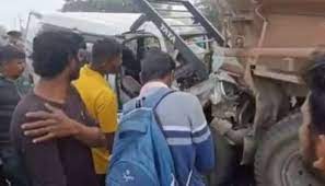 നാല് സ്ത്രീകൾ ഉൾപ്പെടെ 12 പേരാണ് മരിച്ചതെന്ന് വാർത്താ ഏജൻസി പിടിഐ റിപ്പോർട്ട് ചെയ്യുന്നു. ഒരാൾക്ക് ഗുരുതരമായി പരിക്കേറ്റു. പരിക്കേറ്റയാളെ സമീപത്തെ ആശുപത്രിയിൽ പ്രവേശിപ്പിച്ചു. മൂടൽമഞ്ഞ് കാരണം ദൃശ്യപരത കുറവായതാണ് അപകടത്തിന് കാരണമായതെന്നാണ് പ്രാഥമിക നിഗമനം.വ്യാഴാഴ്ച പുലർച്ചെ ഏഴ് മണിയോടെ ചിക്കബല്ലാപ്പൂരിലെ ട്രാഫിക് പോലീസ് സ്റ്റേഷന് സമീപത്ത് വച്ചാണ് അപകടം നടന്നത്