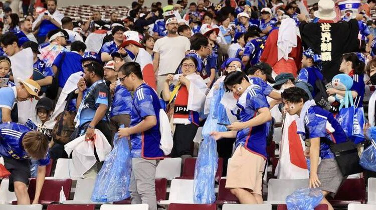 ഖത്തറും ഇക്വഡോറും തമ്മിലുള്ള ഉദ്ഘാടന മത്സരശേഷവും സമാന സംഭവം ശ്രദ്ധയില്പ്പെട്ടിരുന്നു. ജർമനിക്കെതിരായ അട്ടിമറി വിജയത്തിനു ശേഷം സ്റ്റേഡിയം വൃത്തിയാക്കി ജാപ്പനീസ് ആരാധകർ. ആഹ്ലാദ പ്രകടനത്തിനു ശേഷം നീലനിറത്തിലുള്ള ഗാർബേജ് ബാഗുമായി സ്റ്റേഡിയത്തിൽ ചിതറിക്കിടന്ന കുപ്പികളും മറ്റുമാണ് ആരാധകർ വൃത്തിയാക്കിയത്.